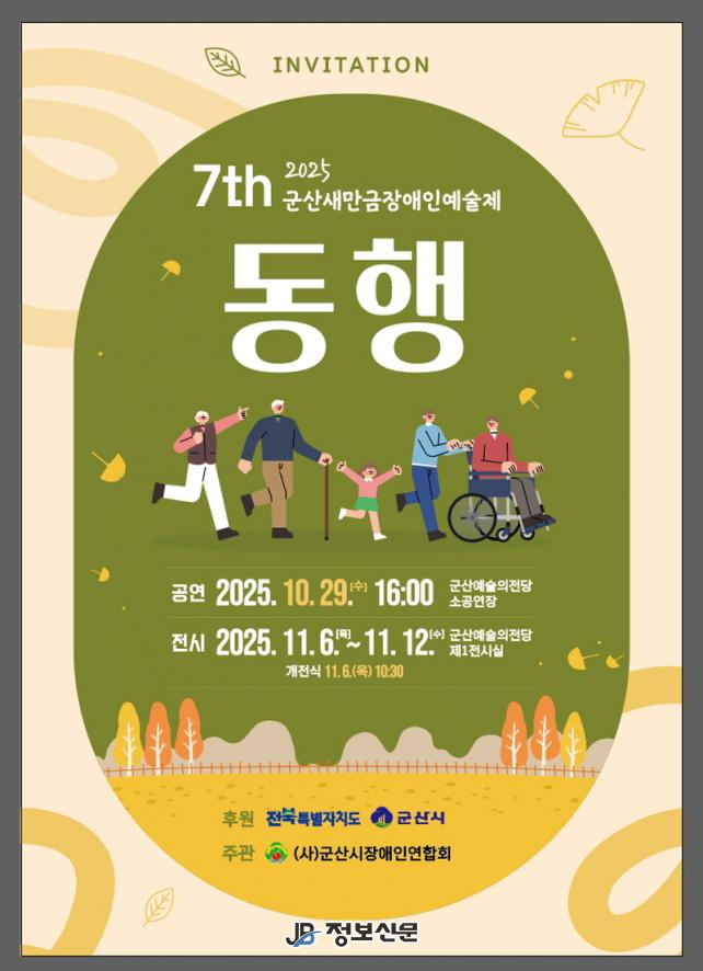전시에는 군산지역 장애인 작가 약 45명이 참여해 미술·사진·공예 등 다양한 작품을 선보이게 된다. 특히 비장애인 예술인(군산구상작가회)의 초청작품 23점도 함께 전시되어, 장애인과 비장애인이 예술로 이어지는 진정한 ‘동행’의 의미를 보여줄 것으로 기대된다.
