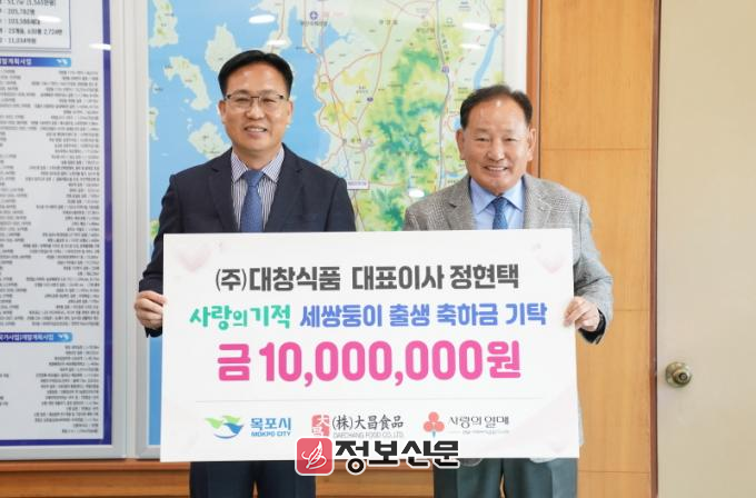 ![]() ㈜대창식품, 세쌍둥이 출산 가정에 출생축하금 1천만 원 기탁 |
