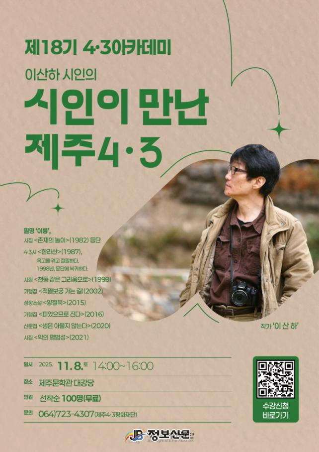 김종민 이사장은 “이번 북토크는 제주4‧3이 단지 지역의 아픈 과거가 아니라, 문학을 통해 오늘의 우리에게 말을 거는 ‘살아 있는 기억’임을 전하고자 기획했다”며 “많은 시민들이 참여해 작가들과 함께 4‧3의 의미를 되새기고 평화와 인권의 메시지를 나누는 자리가 되길 바란다”고 전했다.