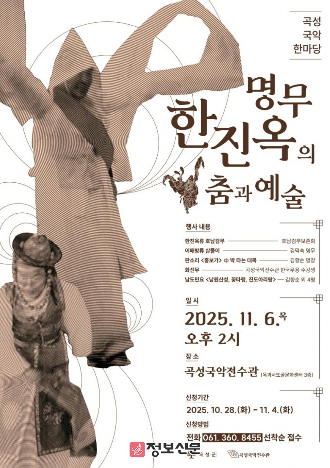![]() 곡성군, 국악 한마당 ‘명무 한진옥의 춤과 예술’ 개최 |