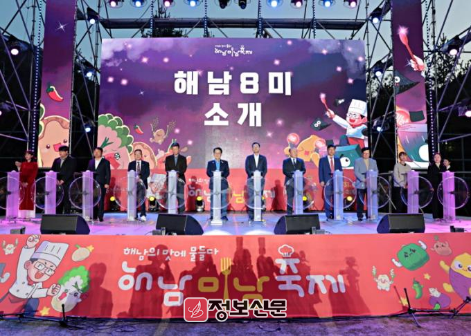 평일임에도 오전부터 인파가 몰리기 시작한 31일에는 해남 14개 주민들이 참여한 읍면별 특산물 뽐내기 퍼레이드와 해남8미(八味) 선포 퍼포먼스 등으로 구성된 개막식과 미남트롯축하쇼가 열려 관람객들의 열띤 환호를 받았다.