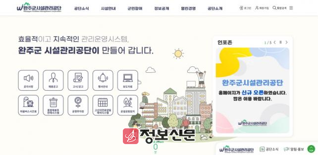 ![]() 완주군, 시설관리공단 홈페이지 개설 |