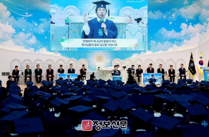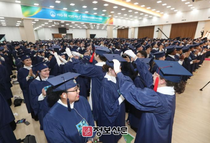 한편 이날 진행된 수료식은 ‘사랑과 축복, 세계를 비추는 빛’을 주제로 진행됐다. 신천지 청주교회 내외부에 2만여 수료생들이 가득 자리를 채웠고, 공간이 협소해 나머지 수료생들은 국내외 신천지예수교회에 흩어져 온라인으로 동참하며 축하의 열기를 더했다.