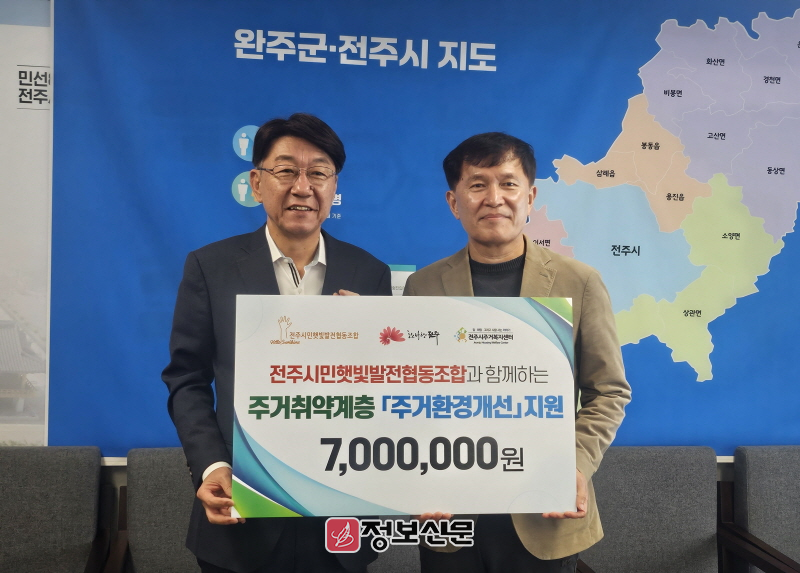 ![]() 전주시민햇빛발전협동조합, 주거 취약 가구의 ‘따뜻한 겨울나기’ 후원금 전달 |