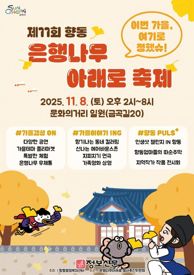 ![]() 순천시 향동, 가을감성 가득한 ‘은행나무아래로’ 축제 개막 |