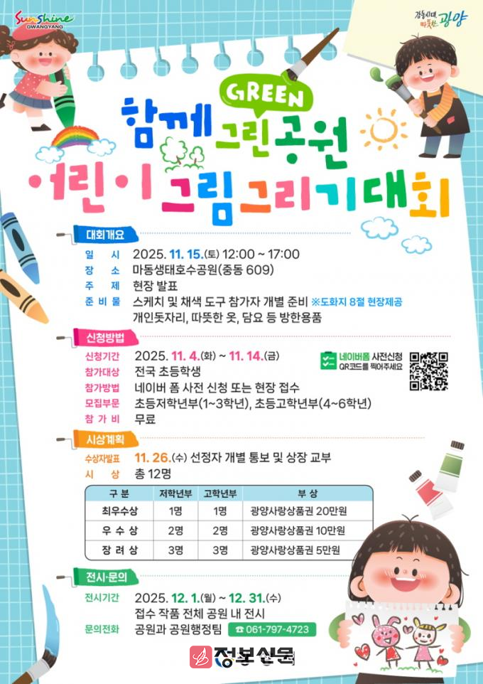 ![]() 광양시, 「함께 Green 공원」 어린이 그림그리기 대회 개최 |