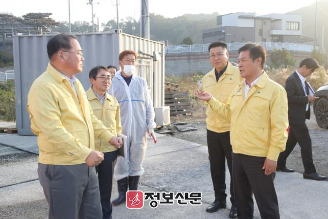 또한 시 축산부서 관계자들과 함께 방역관리 상황을 면밀히 살피고, 현장에서 차단방역에 힘쓰고 있는 근무자들을 격려하며 빈틈없는 철저한 방역을 요청했다.