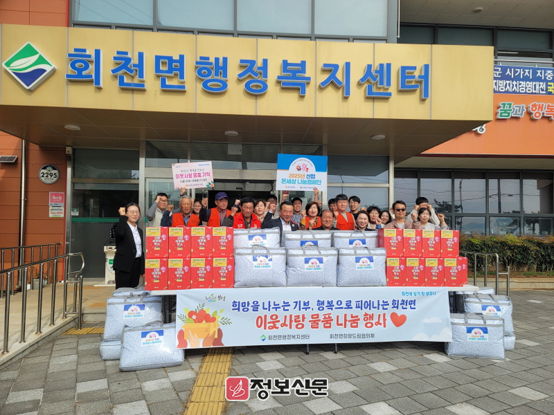이번 나눔은 전국 신협 임직원과 조합원의 기부로 운영되는 ‘신협사회공헌재단 온 세상 나눔 캠페인’의 일환으로 기탁 물품은 회천면 관내 취약계층 20가구에 전달됐다.