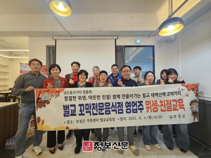 이날 교육에는 벌교 태백산맥 꼬막거리 내 꼬막 전문 음식점 8개소를 포함한 총 20개 업소가 참여했으며, ▲고객 응대 매너 및 친절 서비스, ▲바가지요금, 불공정 상행위 근절 다짐, ▲종사자 개인 위생 관리, ▲식중독 예방 요령 등 실무형 프로그램이 이뤄졌다.