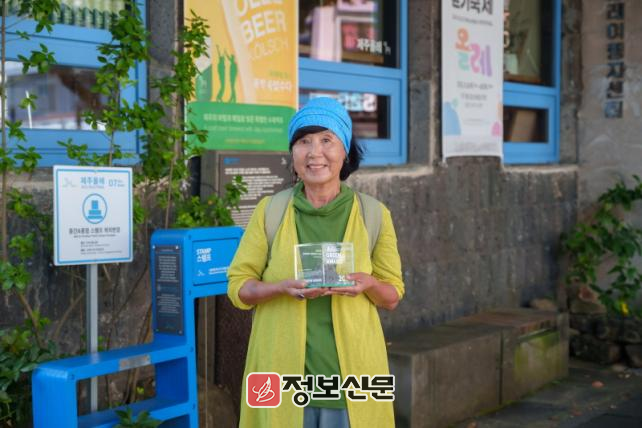 ![]() 제주 헤리티지 공로상 수상자 서명숙. 제주올레 이사장 서명숙 수상자는 지난 18년간 제주 올레길 437km를 순수 민간 주도로 조성하며 제주 도보 여행 문화를 정착시키는 데 기여했다. 또한 ‘클린올레’ 캠페인을 통해 탐방객 참여형 환경 보전 활동을 확산하고 ‘손심엉 올레’ 등 사회적 약자 참여 프로그램을 운영하며 모두가 함께하는 지속가능한 제주 관광 모델을 구축했다. 현재는 일본과 몽골 등 해외 지역에 올레길 모델을 전파하여 제주형 생태관광의 국제 브랜드화에 앞장서고 있다