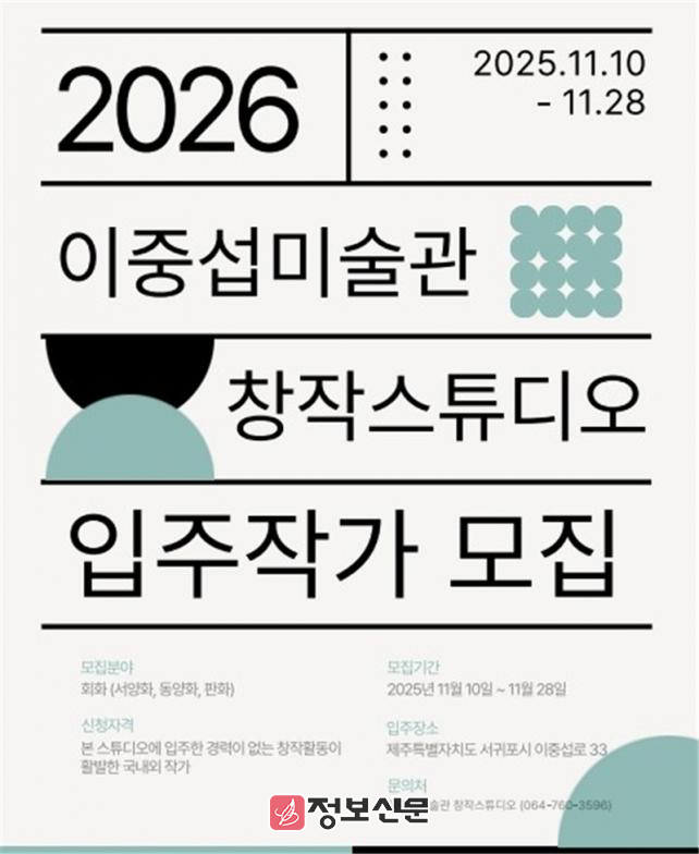 ![]() 서귀포공립미술관, 2026년 이중섭미술관 창작스튜디오 입주작가 모집 |