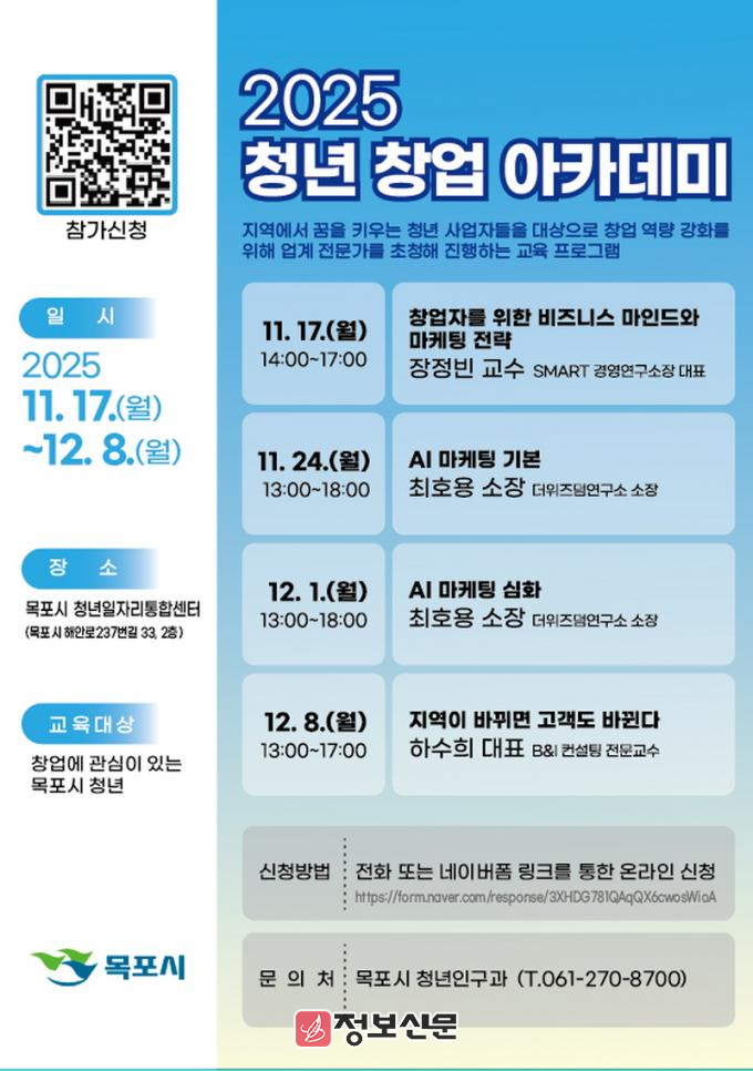![]() 목포시, 2025년 청년 창업 아카데미 개최 |