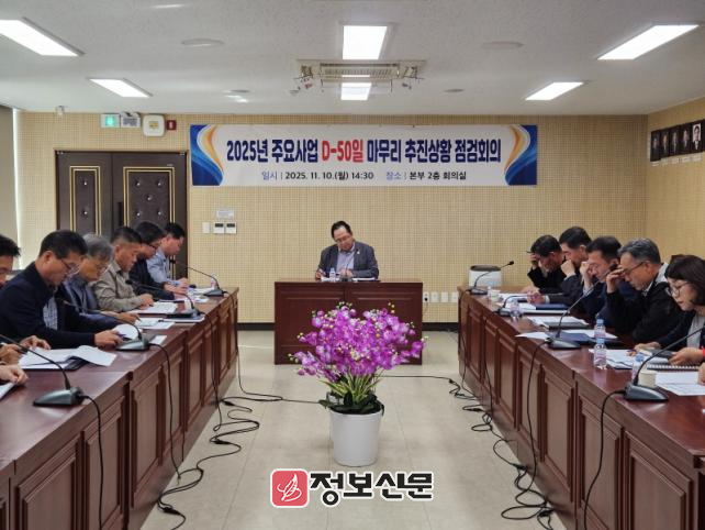 상하수도본부는 10일 오후 본부 2층 회의실에서 ‘2025년 주요사업 마무리 D-50일 추진상황 보고회’를 개최하고 핵심 현안사업, 미해결 민원, 행정사무감사 지적사항, 건의사항 등을 점검했다.