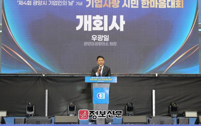 우광일 회장은 개회사를 통해 “‘광양시 기업인의 날’은 국가 경제발전을 이끌어온 기업도시 광양의 시작이며, 미래 비전을 다짐하는 중요한 기념일이다. 지금의 성장을 위해 애써온 기업인과 시민 모두에게 감사의 말씀을 드린다. 오늘「기업사랑 시민 한마음대회」를 통해 기업의 가치와 노동의 존엄을 마음에 새기고 서로 소통하며, 시민들과 함께 광양의 새로운 100년을 향해 힘차게 나아가길 기대한다.”고 말했다.