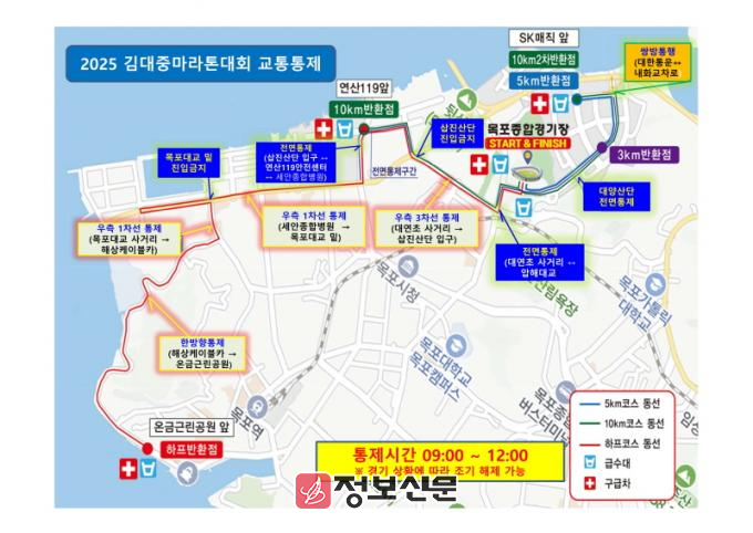 교통 통제 구간은 ▲대연초 삼거리~압해대교 ▲대양산단 ▲삽진산단 입구~연산119 앞 구간으로, 해당 구간은 전면 통제될 예정이다. 또한 목포해상케이블카에서 대반동 온금근린공원 방향은 일방통행으로 운영되며, 당일 오전 일부 시내버스 운행도 제한될 예정이다. 자세한 사항은 목포시 누리집을 통해 확인할 수 있다.