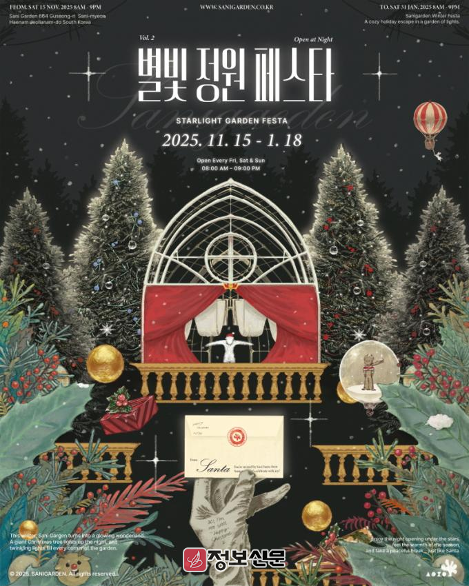 산이정원 관계자는 ‘별빛정원 페스타는 해남의 겨울을 대표하는 야간 정원 축제로, 자연과 빛이 어우러진 산이정원만의 감성을 담았다”며 “11월 15일 점등식을 시작으로 올겨울 산타가 머무는 정원에서 따뜻한 위로와 힐링의 시간을 느껴보시길 바란다”고 말했다.