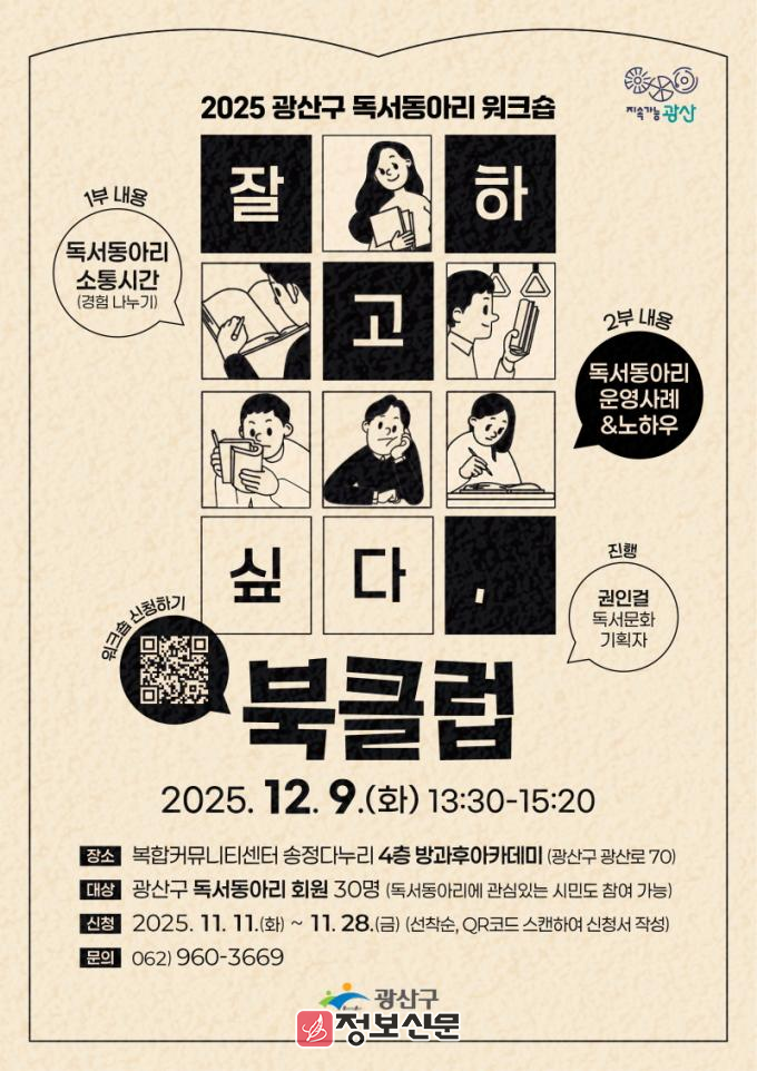 ![]() 광주시 광산구, ‘잘 하고 싶다, 북클럽’ 독서동아리 워크숍 추진 |