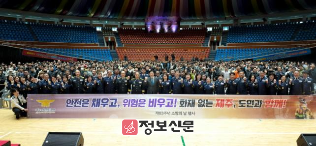 제주도 소방안전본부(본부장 박진수)는 11일 오전 제주 한라체육관에서 ‘제63주년 소방의 날 기념행사’를 개최했다고 밝혔다.