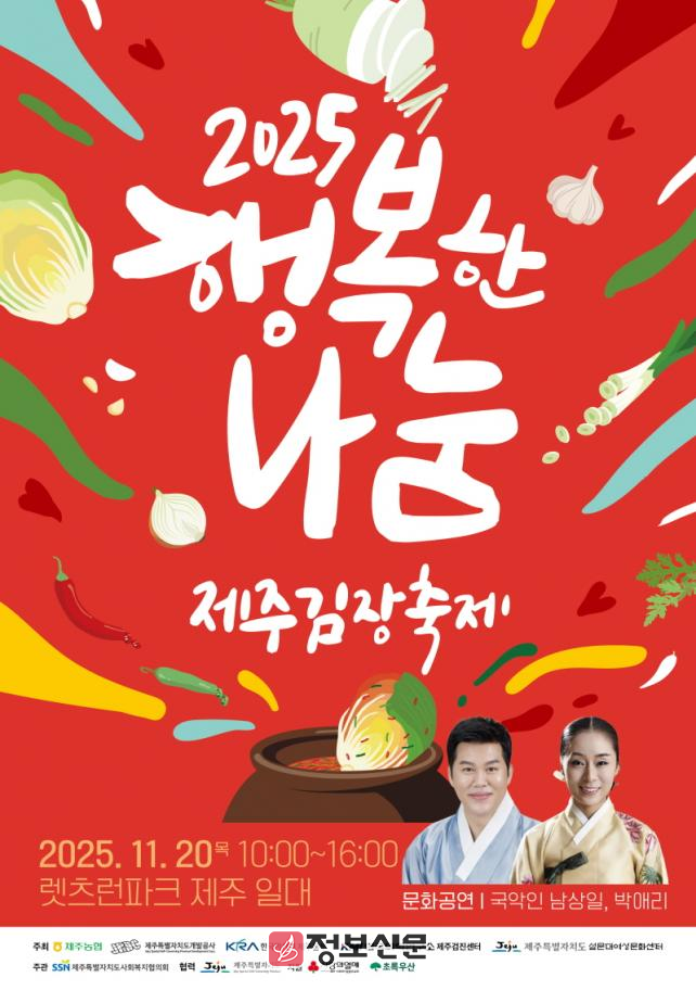 제주사회복지협의회 관계자는“2025년 행복한 나눔 김장축제는 도민, 기업, 자원봉사자가 함께 제주를 따뜻하게 만드는 대표 사회공헌 축제”라며“그동안 산발적으로 진행되던 김장행사를 하나의 축제로 만들어 지역 곳곳에 ‘온정의 김치’가 전 해질 수 있도록 준비하고 있다”고 밝혔다.