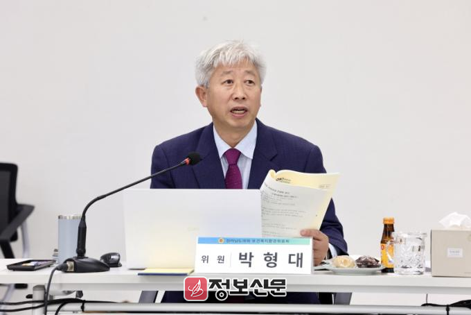 ![]() 박형대 의원(진보당·장흥1)이 지난 12일 열린 전남도 환경산림국 행정사무감사에서 질의하고 있다. |