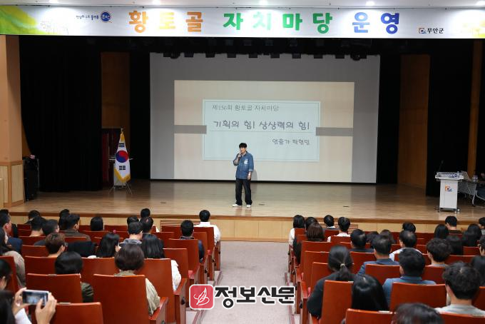 이번 황토골 자치마당은 국회의장 행사기획 자문관이자 목포대학교 특임교수인 탁현민 강사를 초청해 ‘기획의 힘, 상상력의 힘’을 주제로 진행됐으며, 창의적 행정 구현과 군민과의 공감소통을 위한 의미 있는 자리가 되었다.