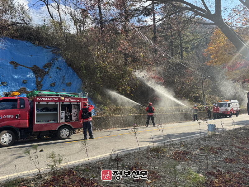훈련은 영농부산물 소각으로 추정되는 산불 신고가 접수되면서 시작됐다. 이후 산불상황관제시스템을 활용한 신속한 상황 전파, 초동 대응 인력·장비 투입, 현장 통합지휘본부의 상황판단회의, 언론 브리핑, 주민 대피 조치 등이 이어지며 실제 상황에 버금가는 시뮬레이션이 전개되었다.