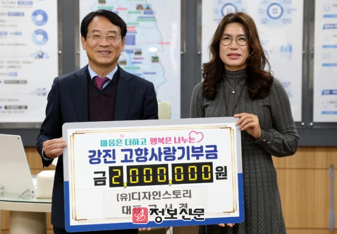 이어 광주 남구에 소재한 출판, 디자인 기업 (유)디자인스토리의 고서경 대표는 이웃 강진의 발전을 위해 한달음에 달려와 고향사랑기부금을 쾌척했다. 고서경 대표는 지난 7월 광주전남지방중소벤처기업청장상을 수상해 모범여성기업인으로 인정받은 바 있다.