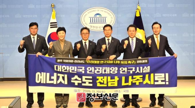 광주·전남 국회의원들은 이날 공동결의문에서 “나주는 안정적 부지 여건, 우수한 정주환경, 한국전력·한국에너지공대 등 세계적 에너지 인프라가 집적된 인공태양 연구시설의 최적지”라고 강조했다.