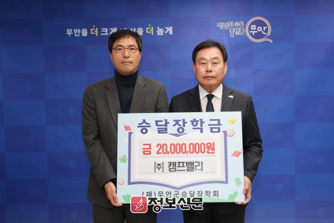![]() 주식회사 캠프밸리, 무안군승달회 장학금 기탁 |