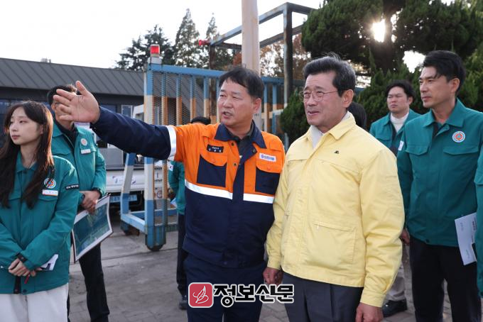 이후 정 시장은 광양제철소 파트너사협회 간담회에서 나온 건의 사항을 확인하기 위해 광양제철소 2문 인근을 찾았다. 이곳은 횡단보도 이용 보행자가 적지만 신호로 인해 출퇴근 시간대 차량 정체가 발생해 개선이 요구된 구간이다. 정 시장은 관계부서의 검토 내용을 보고받은 뒤 건의자와 함께 현장을 둘러보며 교통정체 해소 방안을 모색했다.