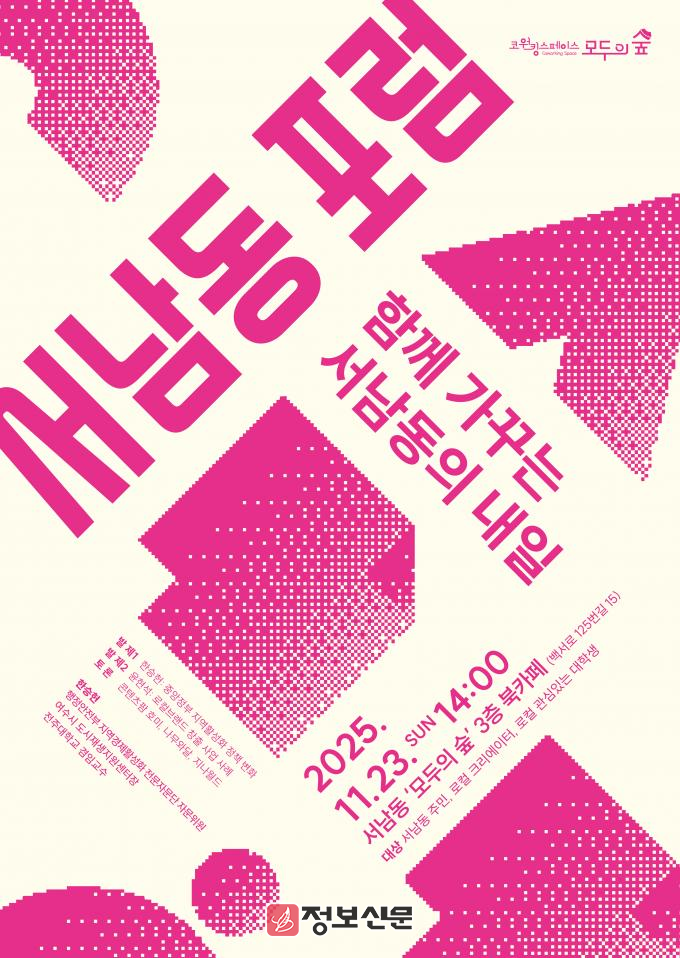 주민 참여 프로그램은 ‘서남동의 과거·현재·미래’를 키워드로 자유로운 제안과 의견을 나누는 방식으로 운영된다. 주민·상인·청년의 목소리를 수렴해 골목공동체의 미래상을 함께 그려보는 시간이 될 전망이다.