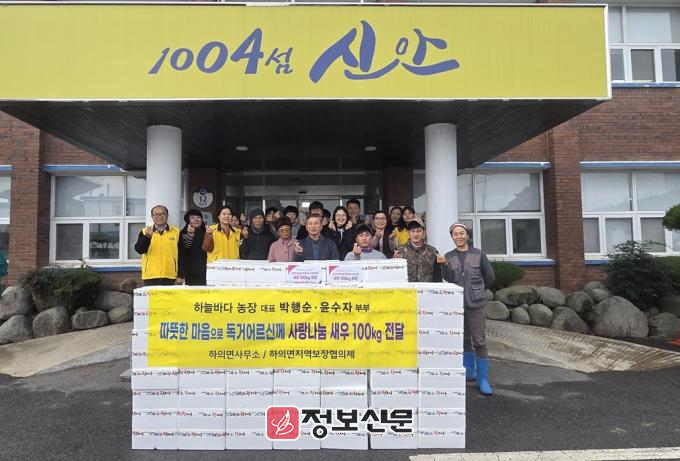 ![]() 하늘바다농장, 신안군 하의면 독거노인에 새우 100상자 기부 |