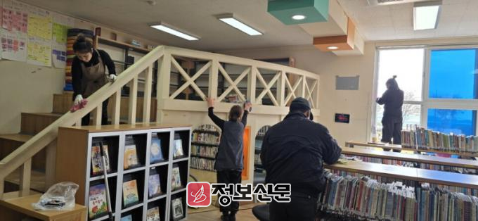 또한, 20일에 초등학교 도서실 청소와 환경 정비를 실시함으로써, 학교 인력만으로 정리하기에 어려움이 있던 특별교실 청소 및 실내 환경 정비를 용역(인력 지원)으로 전환하여 학교의 공간 활용도를 높이고 쾌적한 학습 분위기를 조성하는데 기여하고 있다.