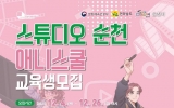 사회 남재옥 기자2025. 12.09[정보신문 = 남재옥 기자] 순천시는 오는 26일까지 지역 문화콘텐츠 핵심인재 양성을 위한 ‘스튜디오 순천(Studio Suncheon)’ 웹툰, 애니메이션 스쿨 교육생을 모집한다고 밝혔다. ‘스튜디오 순천(Studio Suncheon)’은 대한민국 문화도시 사업으로 추진하는 콘텐츠 전문 아카데미로, 지역에 정착한 콘텐츠 기업과 협력해 순천 산업현장에 특화된 실무 중심 교육과정을 제공한다. 교육은 웹툰, 애니메이션 2가지 분야로 구성되며, 웹툰은 글로벌웹툰허브센터에서, 애니메이션은 글로컬 애니메이션‧문화콘텐츠 캠퍼스...