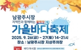 동구 김금덕 기자2025. 09.24[정보신문 = 김금덕 기자] 광주 동구(청장 임택)는 오는 26~27일 이틀간 남광주시장 공영주차장 일원에서 ‘활력장! 가을 바다 축제’를 개최한다고 밝혔다. 남광주시장 문화관광형시장 육성사업 일환으로 열리게 된 이번 행사는 광주 대표 수산물시장인 남광주시장을 전국에 알림과 동시에 지역 대표 축제로 육성하기 위해 마련됐다. 26일 오후 2시부터 농악놀이, ‘수산물 가요제’ 예선전, 전어잡이 체험 등 식전 행사가 펼쳐지며, 오후 5시 개막식을 시작으로 본격적인 행사가 열린다. 오후 6시부터는 가을 별미가 가득한 ‘바다 ...