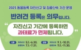 구례 김금덕 기자2025. 09.18[정보신문 = 김금덕 기자] 광양시는 반려견 등록 활성화 및 등록 정보의 현행화를 위해 오는 10월 31일까지 ‘동물등록 자진신고 기간’을 운영한다고 밝혔다. 「동물보호법」에 따르면 주택·준주택에서 기르거나 그 외 장소에서 반려 목적으로 기르는 2개월령 이상인 개는 의무적으로 동물등록을 해야 한다. 또 이미 등록했더라도 동물의 소유자나 소유자의 주소·전화번호, 동물의 상태(유실, 되찾음, 사망) 등이 변경된 경우 반드시 변경 신고해야 한다. 이를 위반하면 최대 60만 원 이하의 과태료가 부과될 수 있다. 다만 이번 자진...