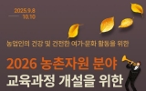 화순 김금덕 기자2025. 09.09[정보신문 = 김금덕 기자] 화순군(군수 구복규)은 2026년도 농촌자원 분야 교육과정 개설에 앞서 주민들의 의견을 적극 반영하기 위해 9월 8일부터 10월 10일까지 4주간 수요 조사를 진행한다고 밝혔다. 현재 화순군에서는 지역 농촌자원을 활용한 농촌생활문화교육·향토음식학교· 우리쌀활용교육 등 다양한 과정을 운영하고 있다. 이번 수요 조사는 온라인 및 방문을 통해 참여할 수 있으며, 온라인은 화순군농업기술센터 누리집의 QR코드를 통해 가능하고, 오프라인은 농업기술센터 농촌자원팀에 방문·참여할 수 있다. 화순군농업...