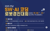 전남 김금덕 기자2025. 09.09[정보신문 = 김금덕 기자] 전라남도는 오는 17일까지 ‘2025년 전남 SW·AI 코딩 로봇경진대회’ 참가자를 모집한다. 이번 대회는 소프트웨어(SW)와 인공지능(AI) 분야의 창의적 미래 인재 발굴을 위해 추진하는 것으로, 전남지역 초·중·고등학생을 대상으로 (재)전남정보문화산업진흥원이 주관한다. 경진대회는 초등부·중등부·고등부로 나눠 진행된다. 주제는 ▲초·중등부-도시의 문제를 해결하는 스마트 로봇 ▲고등부-다양한 교통규칙을 준수하는 스마트 자율주행이다. 참가 희망자는 학생 2명과 지도교사 1명이 한 팀을 구성...