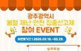 광주 남재옥 기자2026. 03.12[정보신문 = 남재옥 기자] 광주광역시(시장 강기정)는 봄철 재난과 생활 속 안전 위험요소를 사전에 차단하기 위해 ‘봄철 재난·안전 집중신고제’를 오는 5월31일까지 운영한다. 이번 집중신고제는 시민 참여를 통해 생활 주변의 위험요소를 신속히 발견하고 선제적으로 조치하기 위해 마련했다. 봄철 집중 신고 대상은 ▲산불 ▲해빙기 ▲어린이 안전 ▲축제·행사 등 4개 분야이다. 주요 신고 사례는 ▲불법 취사·소각, 전기시설 위험 ▲포트홀, 축대 파손 ▲어린이보호구역 안전펜스 파손, 놀이시설 파손 ▲행사장 인파 밀집 우려, 축제장...