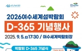 교육 김금덕 기자2025. 09.01[정보신문 = 김금덕 기자] ‘2026여수세계섬박람회 D-365 기념행사’가 오는 5일 여수세계박람회장 해양광장에서 펼쳐진다. (재)2026여수세계섬박람회 조직위원회(이하 ‘조직위)는 섬박람회 개막을 1년 앞두고 여수시민의 역량 결집과 사전 붐업 분위기 조성을 위해 이번 행사를 마련했다. 조직위에 따르면 섬박람회 주행사장은 8개의 전시관에 들어갈 콘텐츠 윤곽이 드러났으며, 이달 말 착공하여 내년 6월 준공 예정이다. 부행사장인 개도와 금오도는 섬 캠핑장, 카약‧카누 체험, 갯벌 체험 등 다양한 섬 체험 프로...