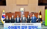 임실 김금덕 기자2025. 08.29[정보신문 = 김금덕 기자] 무주군은 지난 29일 함양군청에서 충청북도 옥천군(군수 황규철), 전북특별자치도 장수군(군수 최훈식), 경상남도 함양군(군수 진병영)·산청군(군수 이승화)·하동군(군수 하승철)·남해군(군수 장충남)과 ‘대전~남해선 철도 건설’을 위한 업무협약을 체결했다. 이날 경과보고와 협약서 서명, 공동건의문 채택, 상징 퍼포먼스, 기념 촬영 등의 순으로 진행된 협약은 ‘대전~남해선 철도건설 사업’의 원활한 추진과 정부의 제5차 국가철도망 구축계획 반영을 위해 추진된 것으로, △철도노선 부재 지역의 발...