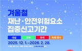 제주시 남재옥 기자2025. 12.05[정보신문 = 남재옥 기자] 제주시는 시민이 안전한 제주를 만들기 위해 지난 12월 1일부터 내년 2월 28일까지 ‘겨울철 재난·안전 위험요소 집중신고 기간’을 운영하며, 사고 위험에 대한 시민 신고를 적극 독려하고 있다. 이번 집중신고 대상은 대설, 한파, 화재, 축제·행사 등 4개 유형으로 ▲제설 미흡, 시설물 파손·붕괴 위험, ▲인도 결빙, 동파 우려, ▲비상구 물건 적치, 담배꽁초 투기, 불법 취사·소각, ▲인파 밀집 우려, 행사장 시설 파손 등이다. 신고 기간에는 안전신문고 앱 또는 포털(www.safetyrep...