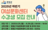 [정보신문 = 김금덕 기자] 영광군(군수 장세일)은 관내 여성들이 일상 속에서 새로운 배움을 즐기고 자기계발의 기회를 넓힐 수 있도록 ‘2025년 하반기 영광군 여성문화센터 프로그램’ 수강생을 모집한다고 밝혔다. 이번 프로그램은 취업·창업 지원 과정부터 여가와 교양을 풍성하게 하는 취미·교양 과정까지 다양하게 준비됐다. 취·창업 과정에는 ▲화훼장식기능사(필기) ▲온라인 쇼핑 창업반이 개설되며, 취미·교양 과정으로는 △필라테스 △당구 △그리기(연필소묘&채색) △홈미싱(중급) △꽃꽂이 등 총 2개 분야 7개 강좌가 마련된다. ...