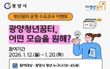 광양 남재옥 기자2026. 01.14[정보신문 = 남재옥 기자] 광양청년꿈터가 1월 12일부터 20일까지 ‘광양청년꿈터, 어떤 모습을 원해?’를 주제로 2026년 청년꿈터 운영을 위한 프로그램 수요조사 이벤트를 진행한다. 이번 이벤트는 청년들이 직접 제안하는 광양청년꿈터의 운영 방향과 프로그램 수요를 파악해, 이를 2026년 청년꿈터 프로그램 운영에 반영하고 청년 커뮤니티 공간으로서의 역할을 확대하기 위해 마련됐다. 참여 대상은 광양시에 거주하거나 광양시에서 활동 중인 18세부터 45세 이하의 청년이다. 참여 방법은 광양청년꿈터 공식 인스타그램을 팔로우한...