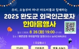 강진 김금덕 기자2025. 08.18[정보신문 = 김금덕 기자] 완도군은 8월 26일 오후 7시, 완도 해변공원 야외 음악당에서 외국인 근로자와 주민이 함께 어우러지는 『2025 외국인 근로자 한마음 행사』를 개최한다. 완도군은 지난 2022년부터 필리핀, 라오스 등과 해외 인력 확보를 위한 업무 협약(MOU)을 체결해 안정적인 외국인 노동력 유치에 힘써왔으며, 결혼이민자 정착 지원, 다문화가정 교육, 외국인 근로자 복지 등 다양한 시책을 추진 중이다. 현재 군에는 1,100여 명의 외국인 근로자가 거주하고 있으며, 그중 결혼이민자 가족의 초청을 통해 근무...