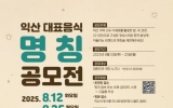 익산 김금덕 기자2025. 08.13[정보신문 = 김금덕 기자] 익산시가 지역 농특산물로 만든 '정성스러운 한 끼 밥상'의 이름을 찾는다. 익산시는 오는 25일까지 '익산 대표음식 명칭 공모전'을 진행한다고 13일 밝혔다. 이번 공모전은 익산 음식의 대내외 인지도를 높이고, 지역성과 창의성을 반영한 특색있는 음식 브랜드 구축을 위해 마련됐다. 응모 기간은 오는 25일까지이며, 고구마순·양파 등 지역 농산물을 활용한 밥·국·반찬(5찬)으로 구성된 정성스러운 한 끼 밥상에 어울리는 이름을 국민 누구나 제안할 수 있다. 공모전 접수는 신청서를 작성해 미식위생과에...