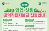고흥 남재옥 기자2026. 03.10[정보신문 = 남재옥 기자] 고흥군(군수 공영민)은 임업·산림의 공익기능을 증진하고 임업인의 소득 안정을 지원하기 위해 ‘2026년도 임업·산림 공익직접지불금(임업직불금)’ 등록 신청을 4월 30일까지 접수한다고 밝혔다. 임업직불금은 임업인이 산림의 공익적 기능을 유지·증진하도록 지원하는 제도로, 임산물 생산업과 육림업에 종사하는 임업인과 농업법인을 대상으로 지급한다. 신청은 시기별로 세 가지 방법으로 진행된다. ▲모바일 문자나 카카오톡 안내를 받은 대상자가 신청하는 ‘간편 신청’(3월 4일~3월 31일) ▲‘임업-in ...