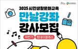 순천 김금덕 기자2025. 07.22[정보신문 = 김금덕 기자] (재)순천문화재단(이사장 노관규)은 시민들의 생활문화예술 활동을 장려하고 지원하기 위해 2025년 시민생활문화교육 「만날강좌」 강사를 오는 29일 오후 6시까지 모집한다. 이번 모집은 ‘하반기’, ‘원데이클래스’ 두 분야로 진행되며, 지난 3월 ‘입문·심화’, ‘상반기’ 모집에 이어 올해 두 번째 강사 모집이다. 모집 인원은 하반기 강좌 7명, 원데이클래스 10명 내외로 총 17명 내외 강사를 선정할 예정이다. 최종 선정된 하반기 운영 강사는 9월부터 11월까지 약 3...