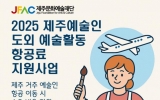 사회 김금덕 기자2025. 06.25[정보신문 = 김금덕 기자] 제주문화예술재단(이사장 김석윤, 이하 재단)은 제주 예술인의 도외 예술활동 기회 확대와 창작 역량 강화를 위해 「2025 제주 예술인 도외 예술활동 항공료 지원사업」을 공모한다고 밝혔다. 이번 사업은 도외 전시·공연 등 예술활동에 참여하는 제주 예술인의 항공료 부담을 완화하여 창작활동과 문화 교류를 촉진하기 위해 마련되었으며, 도서 지역인 제주 예술인의 현실을 반영해 2025년부터 새롭게 추진되는 예술인 복지사업이다. 지원 대상은 제주특별자치도에 주민등록이 되어 있고, 예술활동증명을 완료한 예...