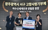 동구 김금덕 기자2025. 06.19[정보신문 = 김금덕 기자] 광주광역시 서구(구청장 김이강)에 고향사랑기부제 최고액 기부자가 탄생했다. 서구는 18일 고향사랑기부금 2천만원을 기부한 양필중 여수 신세계안과 원장에게 감사패를 전달했다고 밝혔다. 올해부터 고향사랑기부제의 개인 연간 기부한도가 기존 500만원에서 2천만 원으로 상향된 가운데 양 원장의 기부는 광주에서 첫 2천만원 기부 사례로 기록됐다. 양 원장은 광주 출신으로 조선대학교 의학대학을 졸업하고 광주 보라안과병원와 밝은안과21병원에서 원장으로 재직했으며 현재는 여수에서 신세계안과를 운영하고 있...